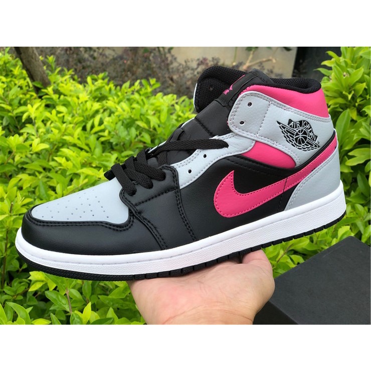 The Air Jordan 1 Mid now comes in all its forms. Added Hot Pink accents on the collar Swooshes tongue and insole branding atop a White midsole and Black rubber outsole completes the design. This Air Jordan 1 Pink Shadow comes with Grey and Black on the upper which resembles that of the Shadow Air Jordan 1 OG.