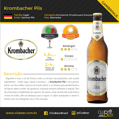 Frete grátis no dia Compre Barril 5 Lts Cerveja Pils Krombacher parcelado sem juros. Krombacher Pils 660Ml. Krombacher Pils is Germanys number one premium lager.